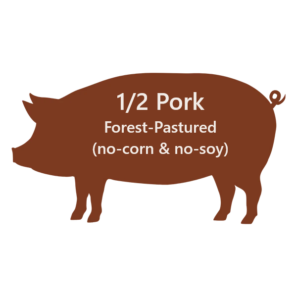 Raised outdoors in our forest-pasture. No-corn, no-soy.